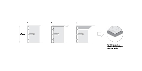 – 6 mm thick porcelain stoneware (backed with a 30 mm thick melamine-faced panel) (C);