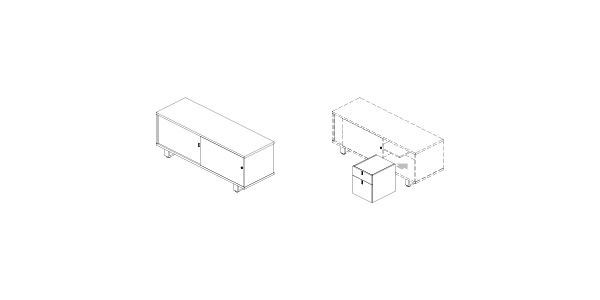 Desks can be provided with structural service cabinets with sliding doors, if required with an internal drawer and filing unit or three drawers.
